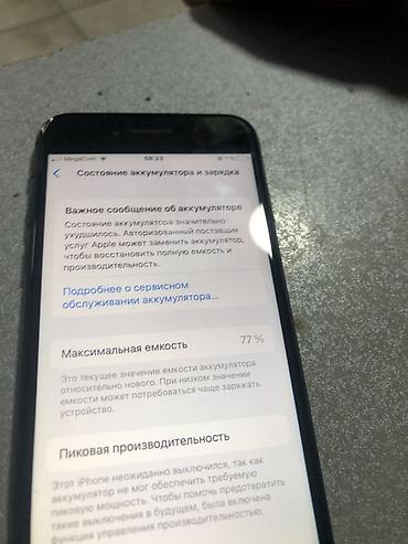 - Состояние аккумулятора по iOS: максимальная емкость 77% (в разделе «Состояние аккумулятора» отображается соответствующее сообщение).