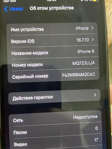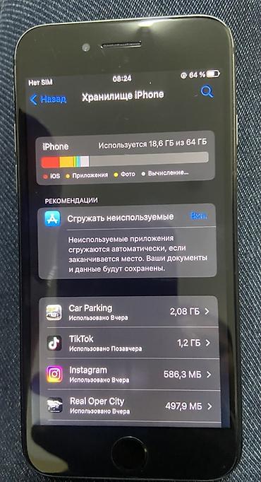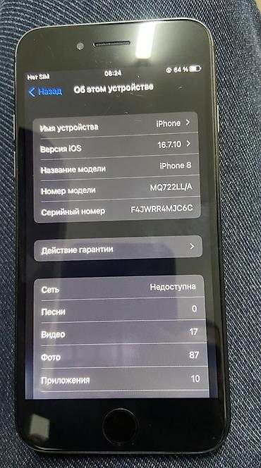 IPhone 8, Б/у, 64 ГБ, Черный, Кабель, 100 %