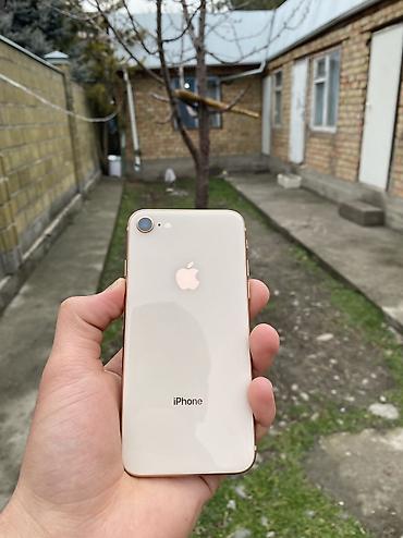 IPhone 8, цвет Gold (золотой). Корпус стекло/алюминий, логотип Apple на задней панели. Кнопка «Домой» с Touch ID.