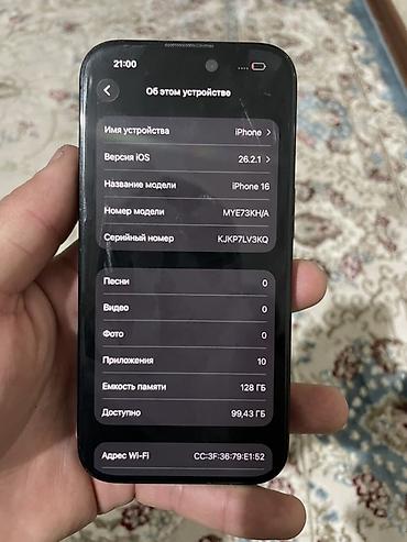 IPhone 16, Б/у, 128 ГБ, Черный, 100 %