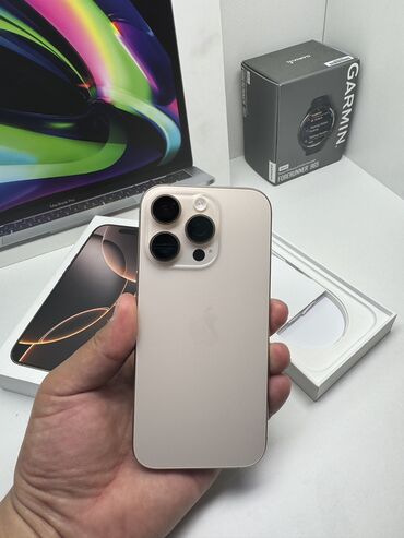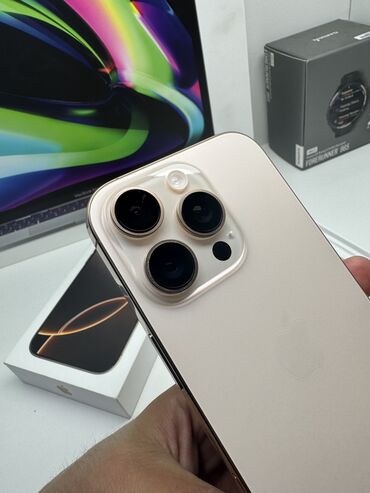 IPhone 16 Pro, Б/у, 256 ГБ, Desert Titanium, Зарядное устройство, Чехол, Защитное стекло, В рассрочку, 100 %