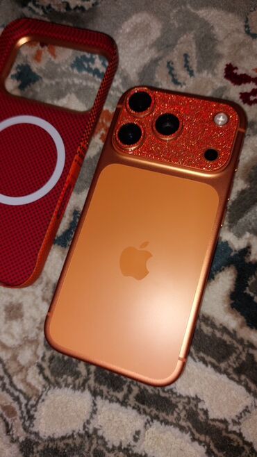 IPhone (линейка с Dynamic Island), цвет оранжевый с глянцевым декором камеры