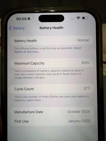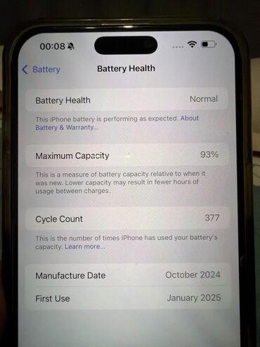 - Аккумулятор: максимальная емкость 93%
