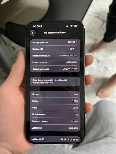 - Память: 512 ГБ, доступно ~56,85 ГБ