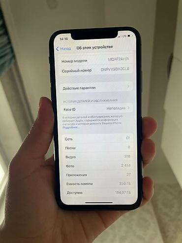 IPhone X, 256 ГБ - Модель: iPhone X (номер модели MQAN2LL/A). - iOS: версия 16.7.12. - Память: 256 ГБ, свободно около 210,87 ГБ. - Экран: OLED Super Retina , Face ID. - Камеры: основная двойная 12...