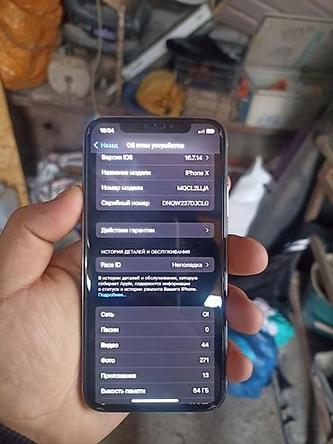 IPhone X, 64 ГБ, Серебристый, 100 %