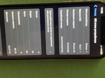 IPhone Xs, 64 ГБ, Белый -Face Id❌ - Экран 5.8" OLED Super Retina (True Tone, Night Shift, тёмная тема доступны — видно на скриншоте). - Разрешение 2436×1125 - Память: 64 ГБ (доступно около 5.46 ГБ ...