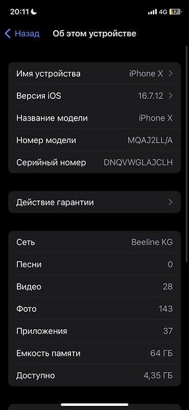 IPhone X, модель MQAC2RU/A, iOS 16.2.1 Характеристики и детали по фото: - Версия iOS: 16.2.1 - Модель: iPhone X (MQAC2RU/A) - Номер модели на экране «Об этом устройстве» нету - Face ID - Память: ...