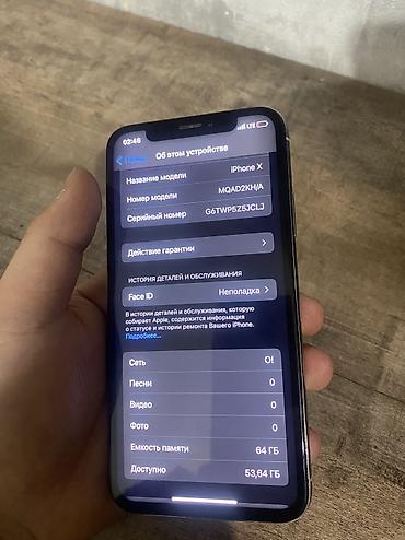 Iphone X 64 всё работает на экране царапин нет по корпусу пару царапин имеется телефон в хорошем состоянии находится в Бишкеке Единственный минус акб не показывает - Недавно менял