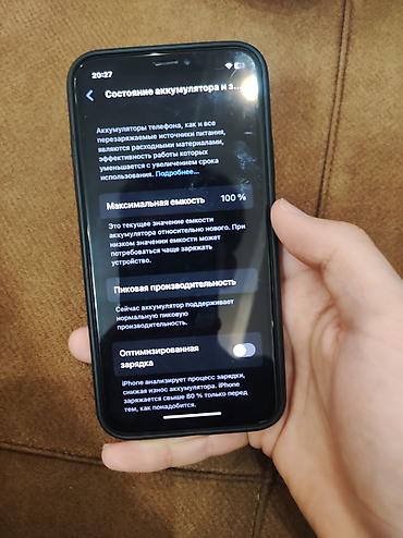 - Состояние аккумулятора в настройках: 100% максимальной ёмкости (скрин на фото).