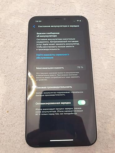 - Аккумулятор: максимальная ёмкость 75%, оптимизированная зарядка включена; пиковая производительность поддерживается (в настройках отображается рекомендация сервиса по замене аккумулятора)