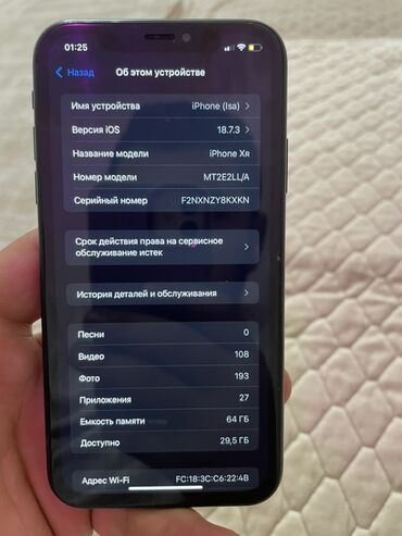 IPhone XR, 128 ГБ, цвет чёрный - Экран 6.1" Liquid Retina (IPS), Face ID. - Камера 12 Мп с вспышкой, фронтальная 7 Мп. - Память: 128 ГБ (доступно около 114,46 ГБ). - iOS 18.7.2, модель MT362LL/A. ...