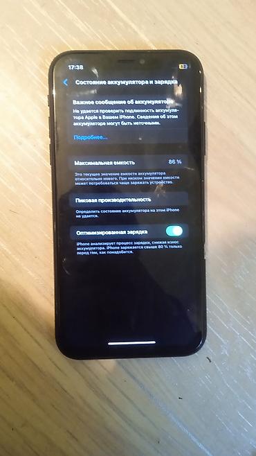 - Аккумулятор: максимальная емкость 86%, включена оптимизированная зарядка. На экране отображается сообщение о невозможности подтвердить подлинность аккумулятора.