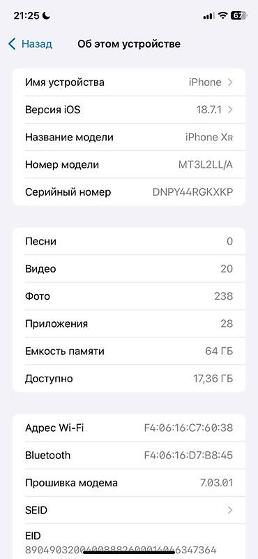 - Модель: iPhone XR (номер модели MT3L2LL/A)