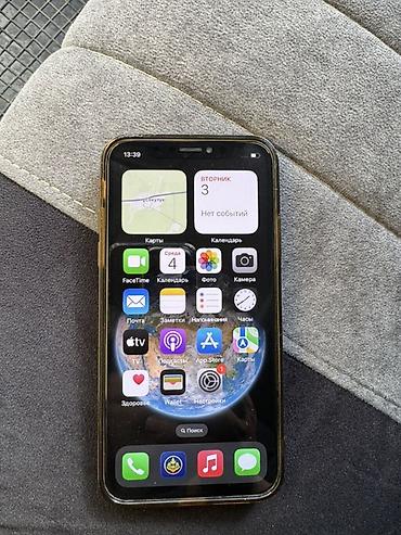 Смартфон активирован и работает на актуальной iOS; на фото показан экран «Об этом устройстве» и рабочий стол. Подходит для всех основных задач, игр, фото и видео, с большим объемом памяти под приложения и медиатеку.