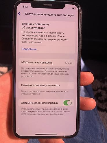 - Аккумулятор: в разделе «Состояние аккумулятора» отображается 100% максимальной ёмкости; присутствует системное сообщение «Не удается проверить подлинность аккумулятора Apple»