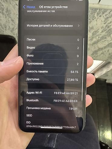 АКБ 100 фейс айди роботайет туртон есть Обмен есть IPhone XS, 64 ГБ, серебристый Характеристики и детали: - Модель: iPhone XS (показано в настройках устройства) - Память: 64 ГБ, свободно около 19,...