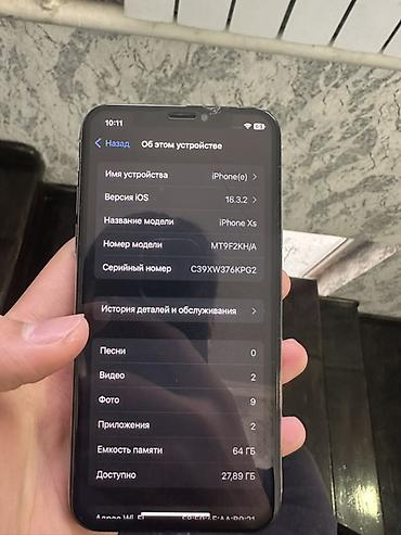 iPhone XS, 64 ГБ, цвет Space Gray - Модель: iPhone Xs (MT9G2KH/A), серийный номер виден на фото - Память: 64 ГБ - iOS: 18.7.1 (на фото в разделе «Об этом устройстве») - Экран: 5.8" OLED Super Reti...
