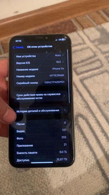 IPhone XS, 64 ГБ Характеристики и детали: - Модель: iPhone XS (видно в меню «Об этом устройстве») - Память: 64 ГБ - iOS: 16.6 - Дисплей OLED - Двойная основная камера, вспышка - Face ID - Поддерж...