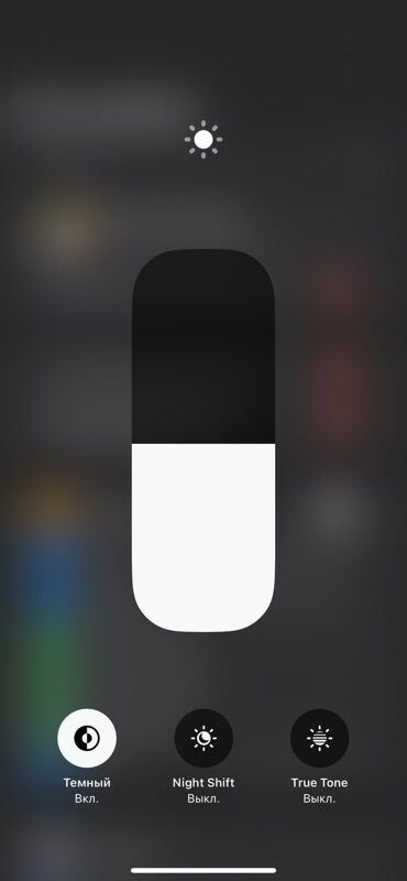 - Экран: OLED , поддержка True Tone (на скрине — выключен), Night Shift выключен, тёмная тема включена