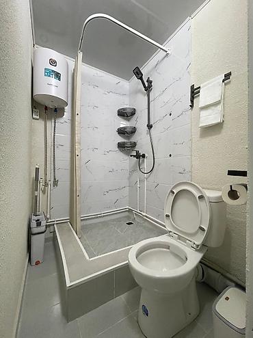 Комната-студия с мебелью и отдельным санузлом. 30000 сом 10000 сом депозит Для девушек - Планировка: одно просторное помещение с двумя односпальными кроватями и прикроватной тумбой, рабочая зона с...