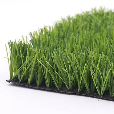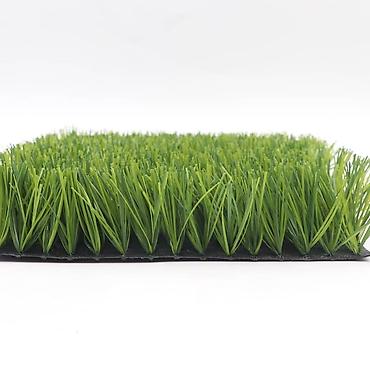 Искусственный газон зеленого цвета с высокой плотностью ворса. Материал волокон имитирует натуральную траву. Гибкая черная основа обеспечивает простоту укладки. Подходит для использования в ландшафтном дизайне, на спортивных площадках, детских зонах и декоративных покрытиях.