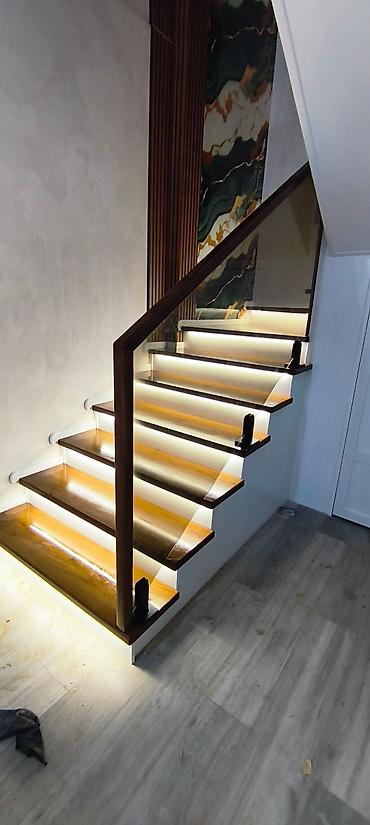 - Интегрированная LED‑подсветка подступенков и боковых панелей с мягким равномерным свечением