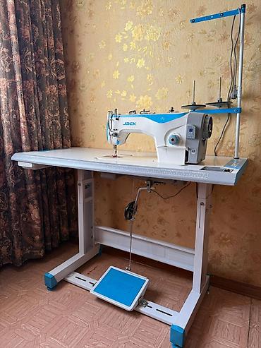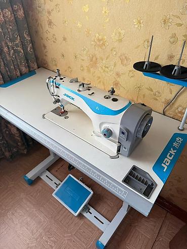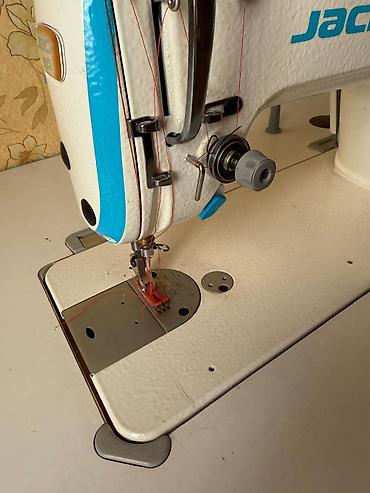 Промышленная швейная машина Jack F4 с прямой строчкой (1-игольная), в комплекте со столом и встроенным сервоприводом.