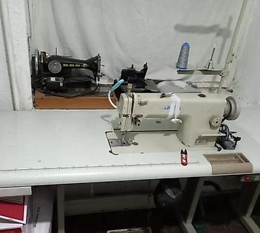 - Дополнительно на заднем плане — классическая ножная/электрифицированная машина челночного стежка, пригодна для плотных тканей и ремонтных работ.