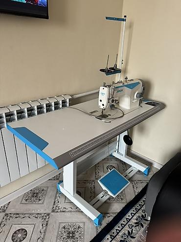Промышленная швейная машина JACK (серия F5) с полноценным столом и подставкой под бобины.