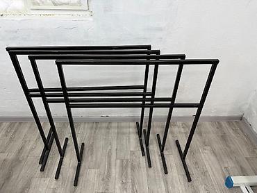 - Металлические напольные рамные стойки/козлы — для раскладки, сушки или хранения лекал и рулонов тканей.