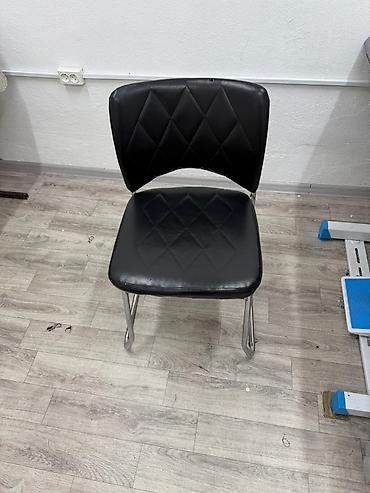 - Рабочий стул с мягким сиденьем и спинкой из кожзаменителя, на хромированной раме — удобная посадка для длительной работы.