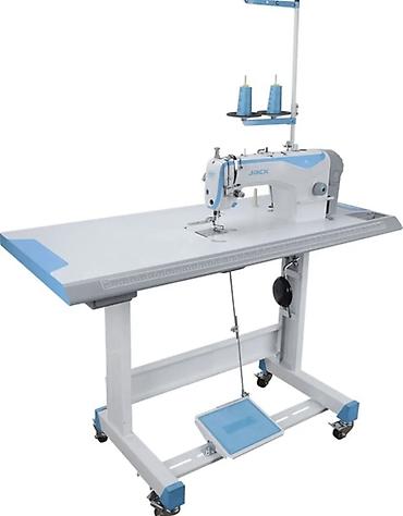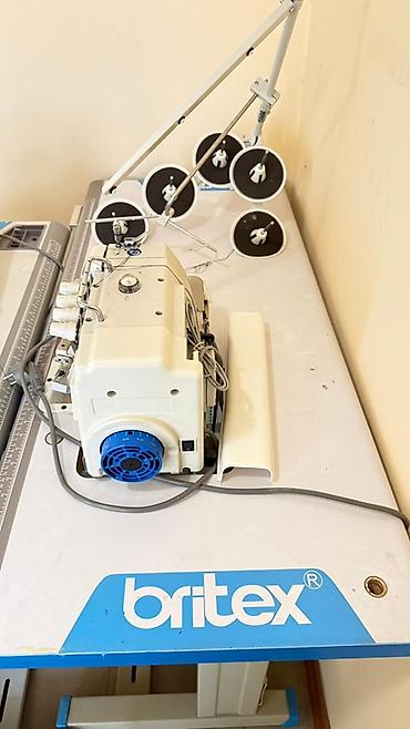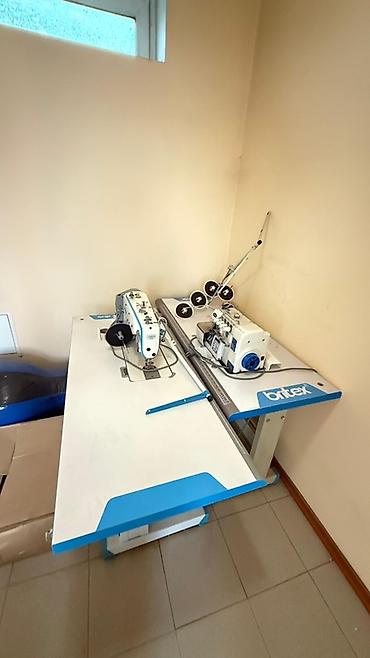 Комплект на фото: отдельные столы, лампы/катушкодержатели, педали, нож обрезки у оверлока. Отлично закрывают полный цикл пошива: прямой шов + обметка/безопасный шов.