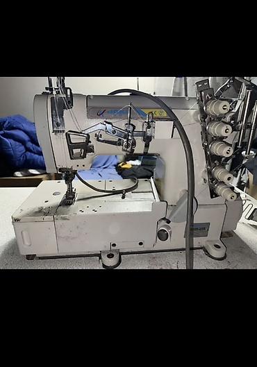 - Плоскошовная (распошивальная) машина JAKI, многониточная, с вертикальным расположением петельников. Предназначена для эластичных материалов и трикотажа: подгибка низа, притачивание резинок, декоративные и соединительные швы. Узел подачи с верхним и нижним транспортом, регулировка длины стежка, прижимной лапки и натяжения нитей. На стойке — кронштейн под несколько больших бобин.