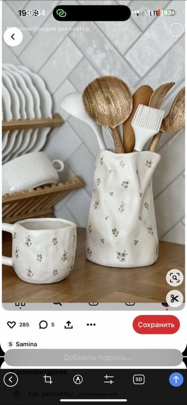 И очень милый и эстетичный набор кухонный для поварешек и ложек. С цветочным, нежным узором.