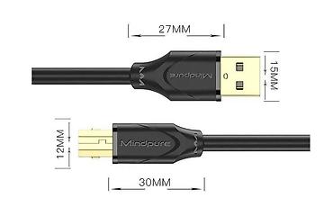 Кабель для принтера Mindpure USB A - USB B 2.0, 1.5м