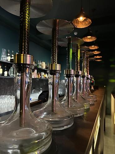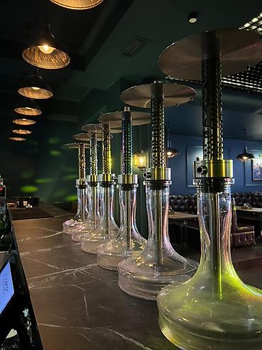 - Профессиональные кальяны одинаковой серии, рассчитанные на интенсивную эксплуатацию в заведениях.