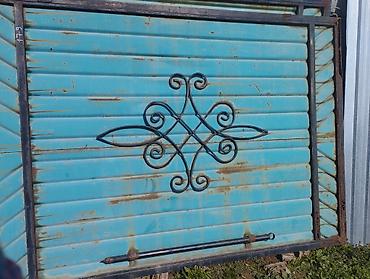 Кованые металлические секции и створки для забора/калитки. Состав: - 2 прямоугольные створки с вертикальными прутьями и заострёнными верхушками (под калитку/ворота). - 1 декоративная секция с круг...