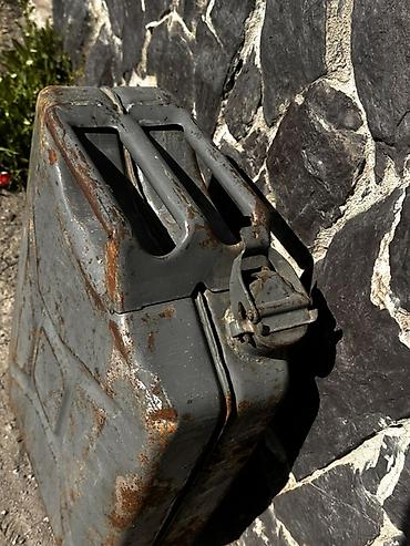 Канистры для топлива (металлические, классической формы “армейского” типа) - Объем: ориентировочно 20 л каждая - Материал: сталь - Цвета: красная, зеленая, темно-серая/черная (несколько штук) - Ру...