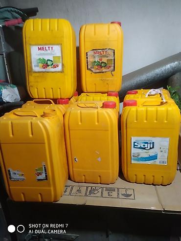 Пластиковые канистры с крышечным горлом с крышкой ориентировочно 4–5 л. - Материал: плотный ПЭ/ПНД, устойчив к большинству бытовых и технических жидкостей (масла, автохимия, моющие растворы, вода ...