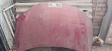 Капот для легкового автомобиля, окраска — темно‑бордовый (металлик). Материал — сталь. Форма с выраженными продольными ребрами жесткости, центральная часть выпуклая, края скругленные. По геометрии — широкий, с глубокой передней кромкой; подходит под установку на петли с двумя точками крепления. На внешней стороне сохранены места под уплотнитель и защёлку. Размер визуально близок к капотам седанов/хэтчбеков С‑класса.