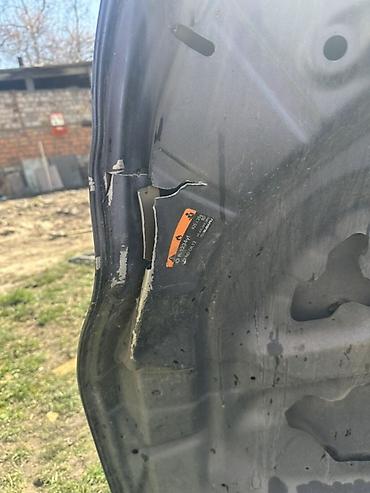 - На правом переднем углу есть значительное повреждение металла и лакокрасочного покрытия; видны трещины по кромке и деформация усилителя (см. фото крупным планом).