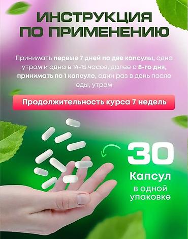 - Первые 7 дней: по 2 капсулы в день — одна утром и одна в 14–15 часов.