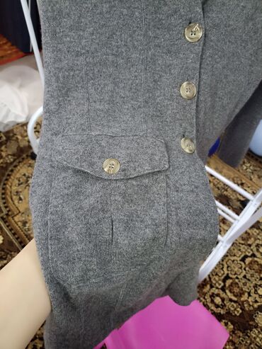 Темно-синее шерстяное пальто с запахом и поясом. У пальто классический воротник, длинные рукава и подкладка. Отличный вариант для прохладной погоды, который можно носить как в офисе, так и на прогу...