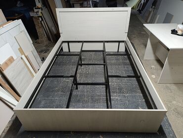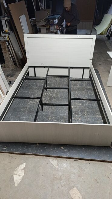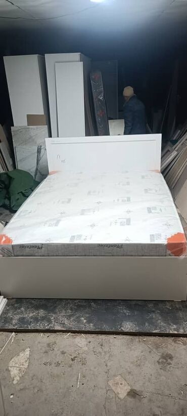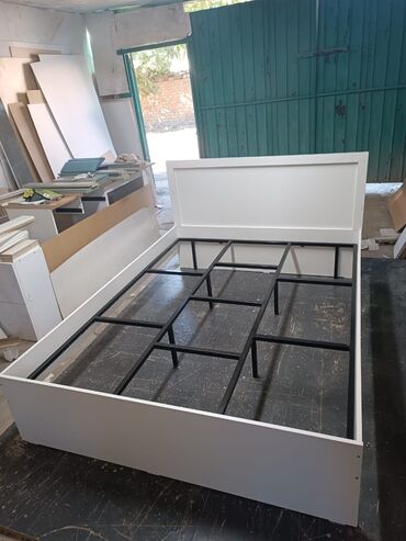 Белый каркас кровати с металлической решетчатой основой. Прочный и надежный, он обеспечивает стабильную поддержку для матраса. Прямой дизайн и нейтральный цвет позволяют легко вписать его в любой интерьер спальни. Идеально подходит для создания комфортного спального места.