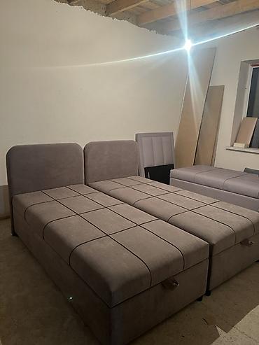 - Двуспальная кровать из двух модулей с единым изголовьем.