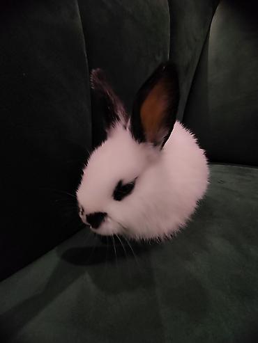 Пушистый декоративный кролик с выразительными черно-белыми отметинами. относится к калифорнийской породе