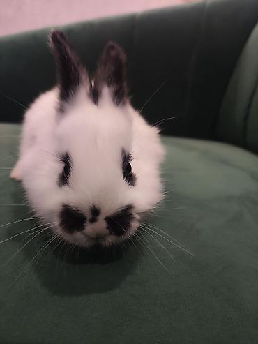 Пушистый декоративный кролик с выразительными черно-белыми отметинами