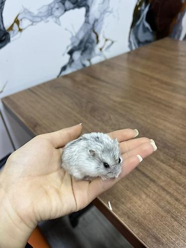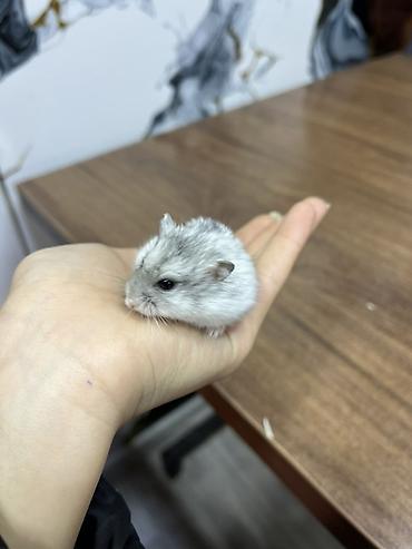 Карликовый хомячок (джунгарик), окрас серебристо-серый (перламутровый), с чёрными глазками. Компактный размер, аккуратные ушки, густая мягкая шерстка. Идеален как первый домашний питомец: неприхотлив, чистоплотен, активен в колесе, любопытный и дружелюбный к аккуратному общению с человеком.