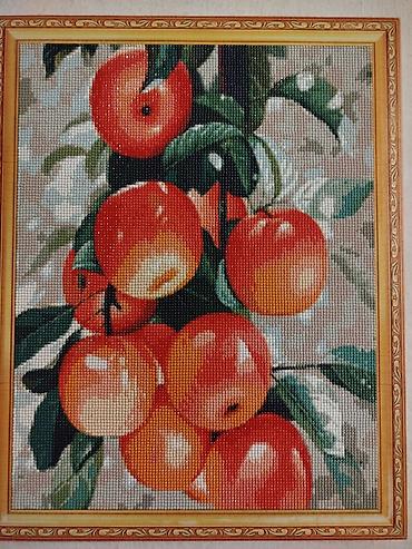 Картина «Яблоки», выполненная в технике алмазной мозаики. Подходит как для подарка, так и для оформления интерьера. На подрамнике, размер 50см на 40см. Самовывоз либо доставка.